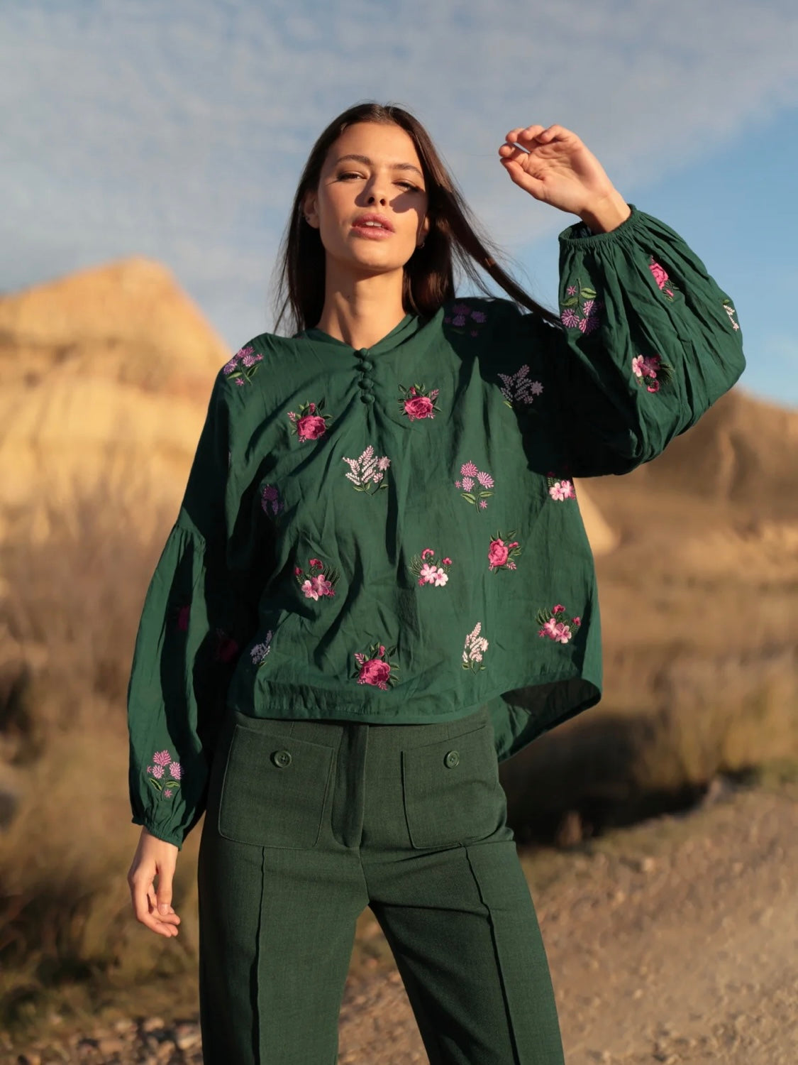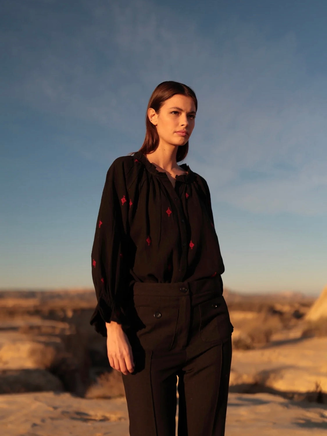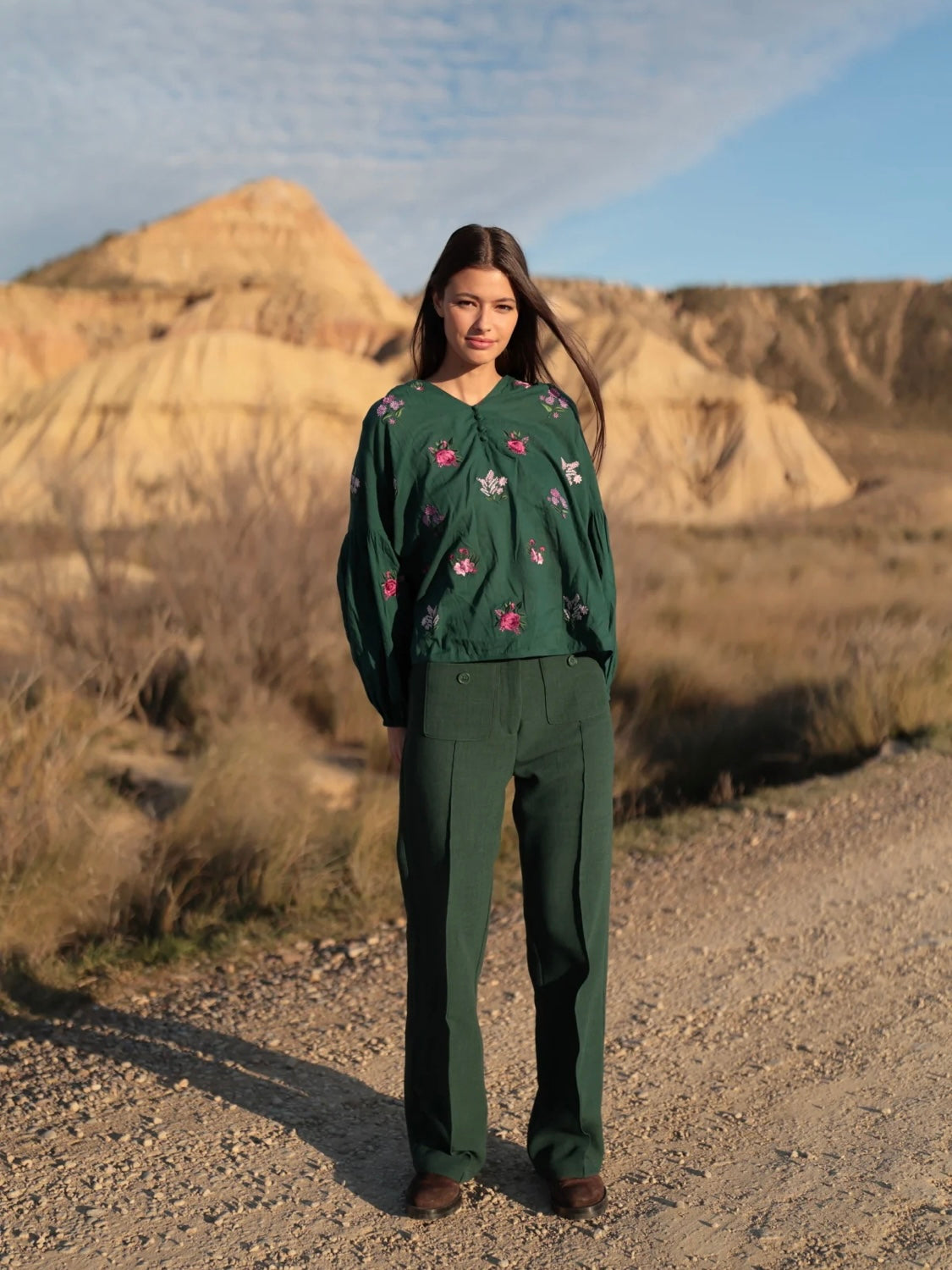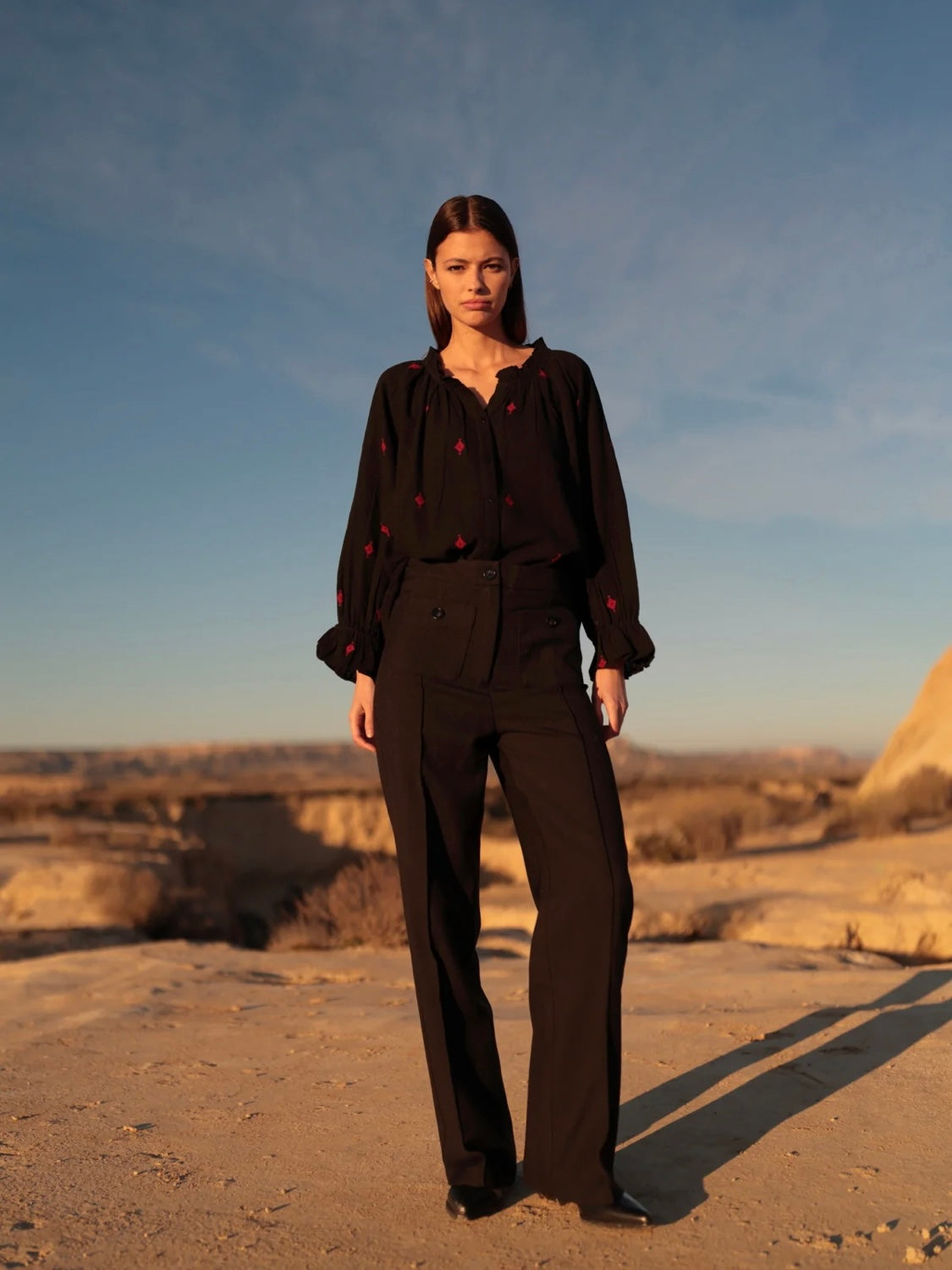 Los bolsillos redondeados con botón aportan un toque informal y diferente, ese detalle que marca la diferencia sin restar elegancia.